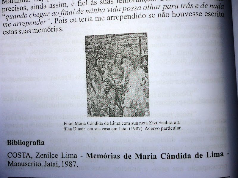 E foi assim que surgiu esta idéia de registrar os depoimentos de minha avó materna Maria Cândida de Lima ou, para mim, simplesmente, vovó Mariinha. Ela, animada pela idéia de registrar para a posteridade uma história de vida rica e plena, de onde, apesar de todas as dificuldades, tirara muita felicidade e realização.